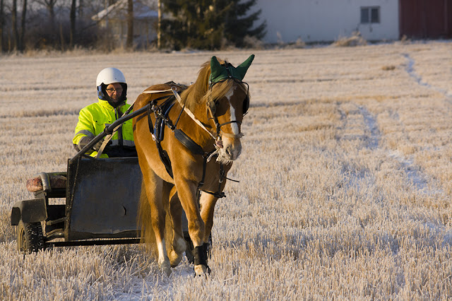 Ennen kuin ketään ehtii edes sanoa "Herkku" on jo toinen postaus tällä viikolla herra orimies Herkusta pihalla! Sanoin jo viikolla että kun tuo pelto on noin kiva niin olisi kiva ottaa Herkustakin muistoksi kuvia. Totta kai kun oli sitten nättiä niin mennä taapersin aamusta tallille ihan vain nappaiseeksi muutaman kuvan. Toki nyt kun olen tuosta kuvaamisesta taas intoutunut enemmän tai vähemmän, pitäisi varmasti tehdä pieniä investointeja: nykyinen kamera on sanomassa itseään lopullisesti irti. Lisäksi olin onnistunut hukkaamaan paremman objektiivin johonkin ja pellon ollessa hervottoman iso ja välillä Karin ja Herkuleksen painellessa sen ääriä pitkin sinne tänne eihän tuosta kuvaamisesta tullut mitään. Ja syytetään vielä saappaitakin jotka pistin jalkaan ajatuksissani, varpaatkin siinä jäätyi!